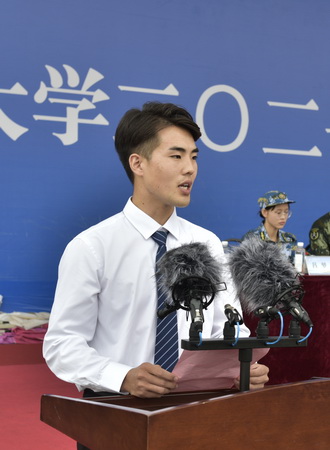 本科生新生代表吕梦瑶、研究生新生代表李浩发言