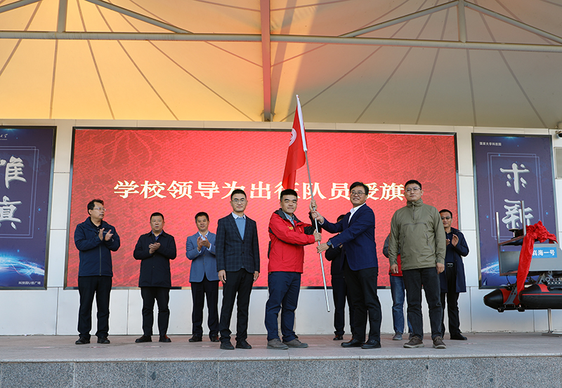 出征仪式上,北京海卓同创科技有限公司捐赠了科考设备,张建为科考队员授旗,与会领导启航“嵙海一号”,共同祝愿科考队员用实际行动向祖国极地科考事业交出一份满意答案。