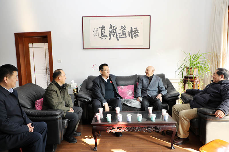 张新文与宋振骐院士亲切交流。张新文说,看到宋院士精神矍铄、步履稳健,非常高兴,感谢宋院士为中国和山东能源事业做出的巨大贡献。张新文表示,此行代表省委、省政府和省政协向宋院士表示新春的祝福和问候。在关切地询问宋院士的身体和工作情况,共同回忆宋院士和科大专家在煤炭生产一线的奋斗故事后,张新文希望宋院士保重身体,继续发挥院士优势,为能源事业与地方及区域经济社会发展再做贡献。