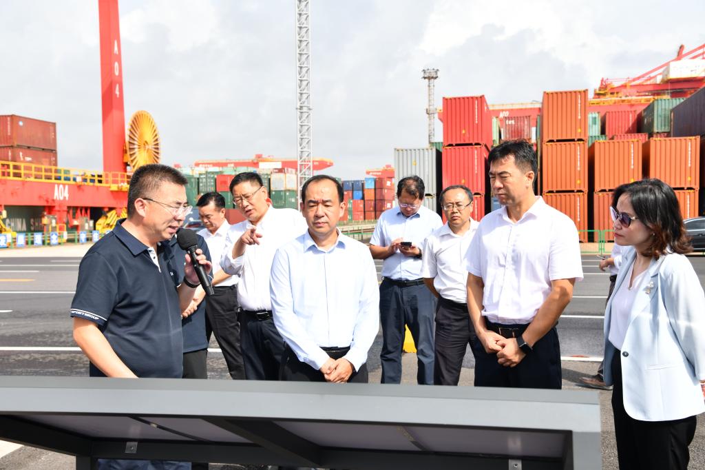 会前,在牟伟、赵冰等日照港领导的陪同下,曾庆田一行参观了日照港展览馆、集装箱自动化码头、日照港科技馆,深入了解日照港的港口建设、科技革新、技术研发等情况。