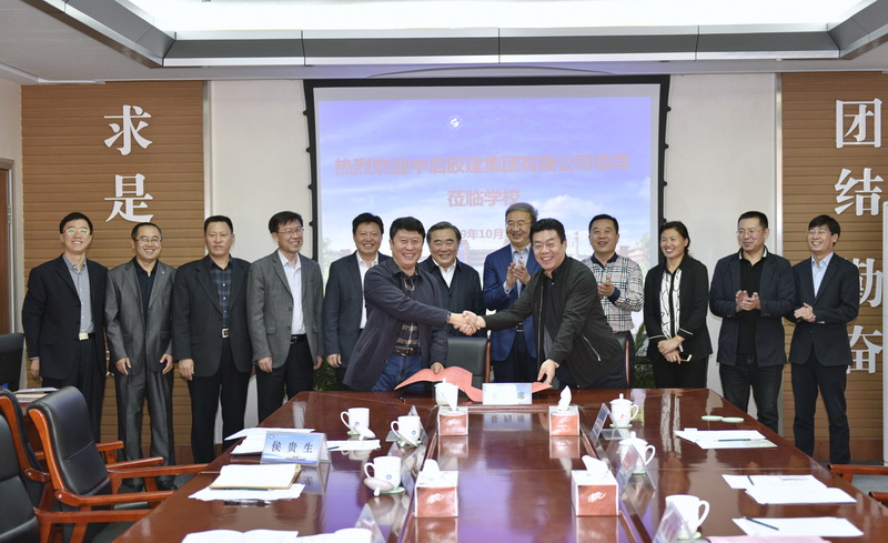 10月31日,学校与中启胶建集团有限公司签署校企战略合作协议。根据合作协议,双方将在科学研究、人才培养、科研成果转化、奖助学金设置等方面开展深度合作,中启胶建集团有限公司向学校教育发展基金会捐赠200万元。