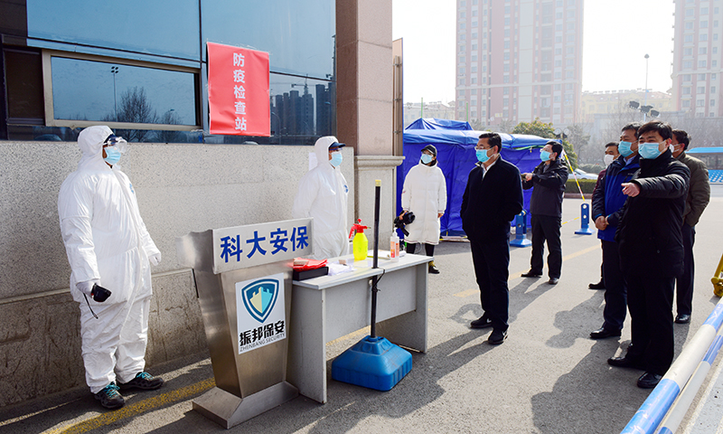 2月8日,校党委副书记、新型冠状病毒感染性肺炎防控工作领导小组副组长尹华到疫情防控各工作点检查慰问,向奋战在疫情防控一线的党员干部、教职员工表示崇高敬意和诚挚感谢,叮嘱他们一定做好自我防护,严格落实疫情防控工作方案,落实落细工作要求,以严格的措施坚决阻断疫情向校园蔓延,当好师生平安的坚强守护人。