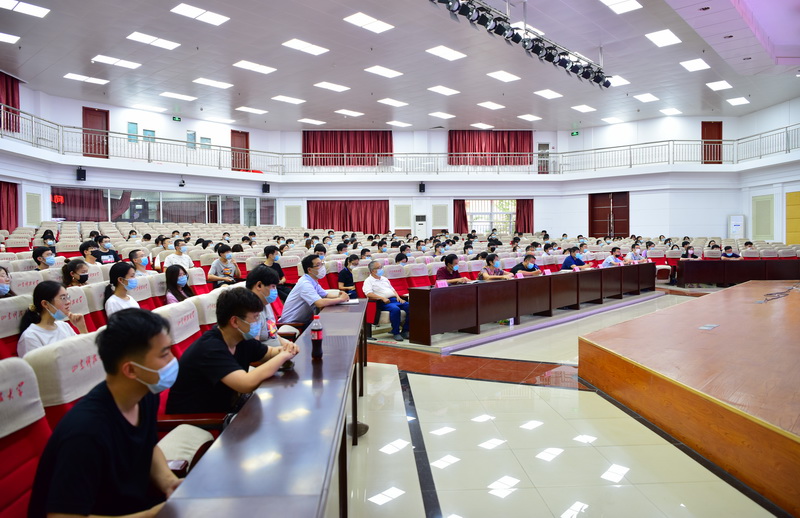 部分师生代表在逸夫讲堂现场聆听