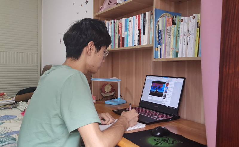 学生在宿舍收听收看网络直播