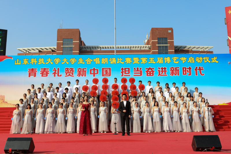 10月25日,以“青春礼赞新中国,担当奋进新时代”为主题的大学生合唱朗诵比赛暨第五届博艺节启动仪式在泰山广场举行。校党委常委、副校长高建广出席活动。