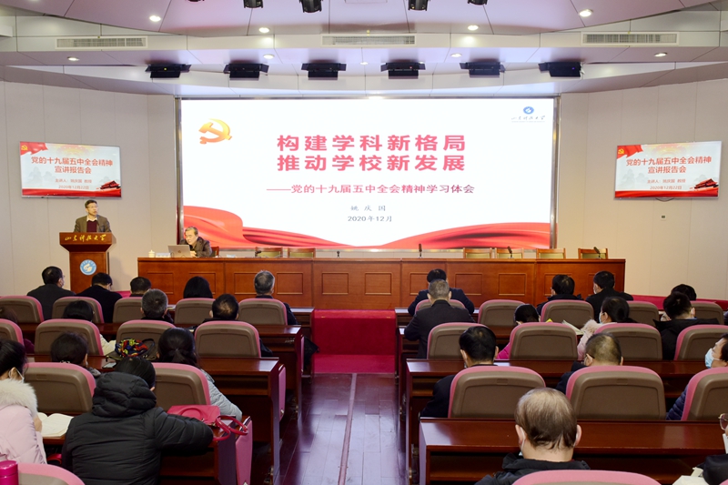 12月22日,校长姚庆国以《构建学科新格局 推动学校新发展》为题,为计算机学院、化工学院师生作了党的十九届五中全会精神学习体会宣讲报告。副校长李玉霞出席宣讲会。