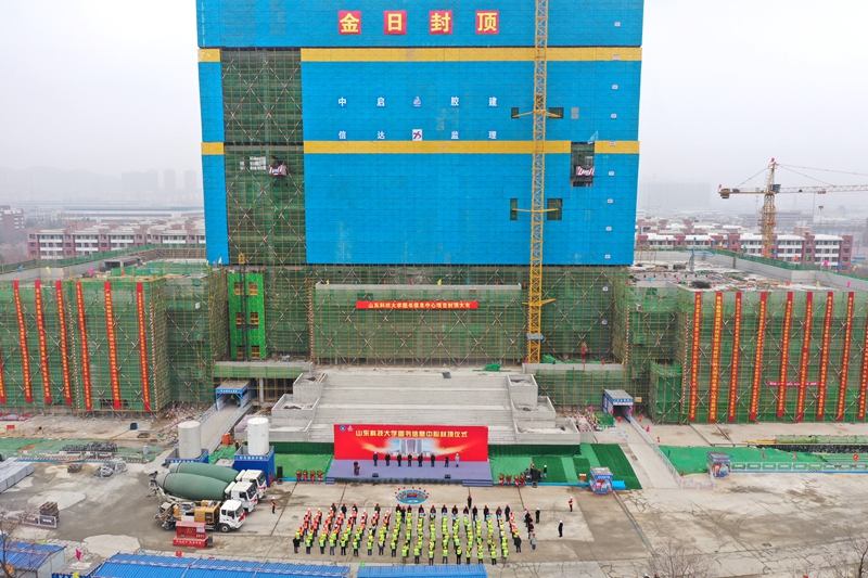1月15日,备受师生关注的学校标志性建筑——图书信息中心项目主体顺利封顶。校党委书记罗公利,校长姚庆国,副校长周东华、孙鹤汀、张英杰和学校相关部门主要负责人及参建单位代表参加了封顶仪式。张英杰和施工单位、监理单位负责人分别致辞。